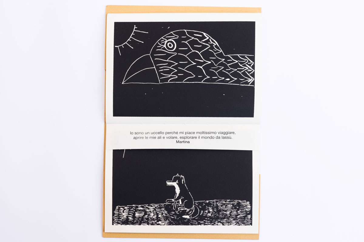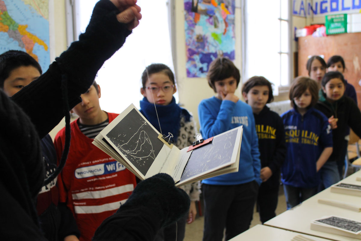 Un percorso intorno al libro come avventura, spazio concreto tra la copertina e le pagine: testa, pancia, piedi e dorso. I libri come segni da cogliere: impronte nel passato, tracce del presente, visioni sul futuro. Piccole e grandi opere da realizzare e poi tenere tra le mani e dentro gli occhi. Storie da raccontare, stampare e rilegare attraverso un fare artigianale, con l’intelligenza delle mani e strumenti “conviviali” alla portata di tutti. La serigrafia è la tecnica, la macchina serigrafica è lo “strumento conviviale”. Conviviale perché esalta l’energia e l’immaginazione personale e di gruppo, estende il raggio d’azione di ciascuno all’interno di una dimensione creativa e lavorativa.